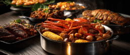 A spectacular boil of snow crab, tiger prawns, mussels, potatoes, and corn in our signature Island Spice Sauce.